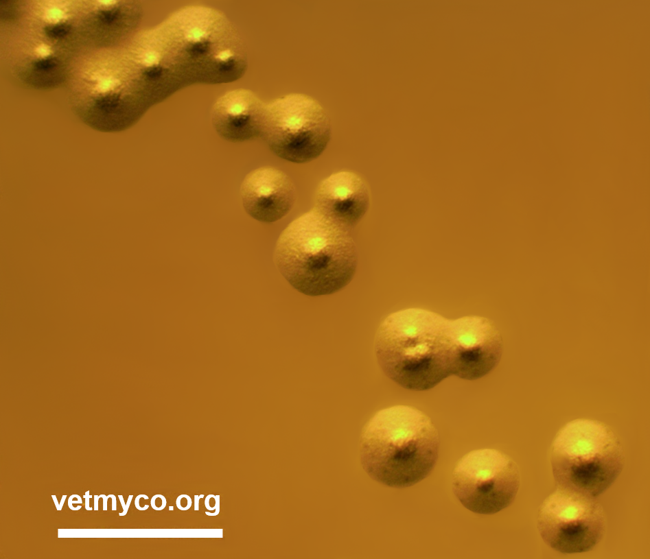 Fig. 2. 16S rRNA gene sequence of Mycoplasma gallinaceum DDT (Accession number: NR_025913)Fig. 3. Colonies of Mycoplasma gallinaceum DDT on modified Hayflick’s agar after 4 days of incubation exhibiting fried egg morphology. Bar, 1 mm. Credits: Joachim Spergser (Vetmeduni Vienna)